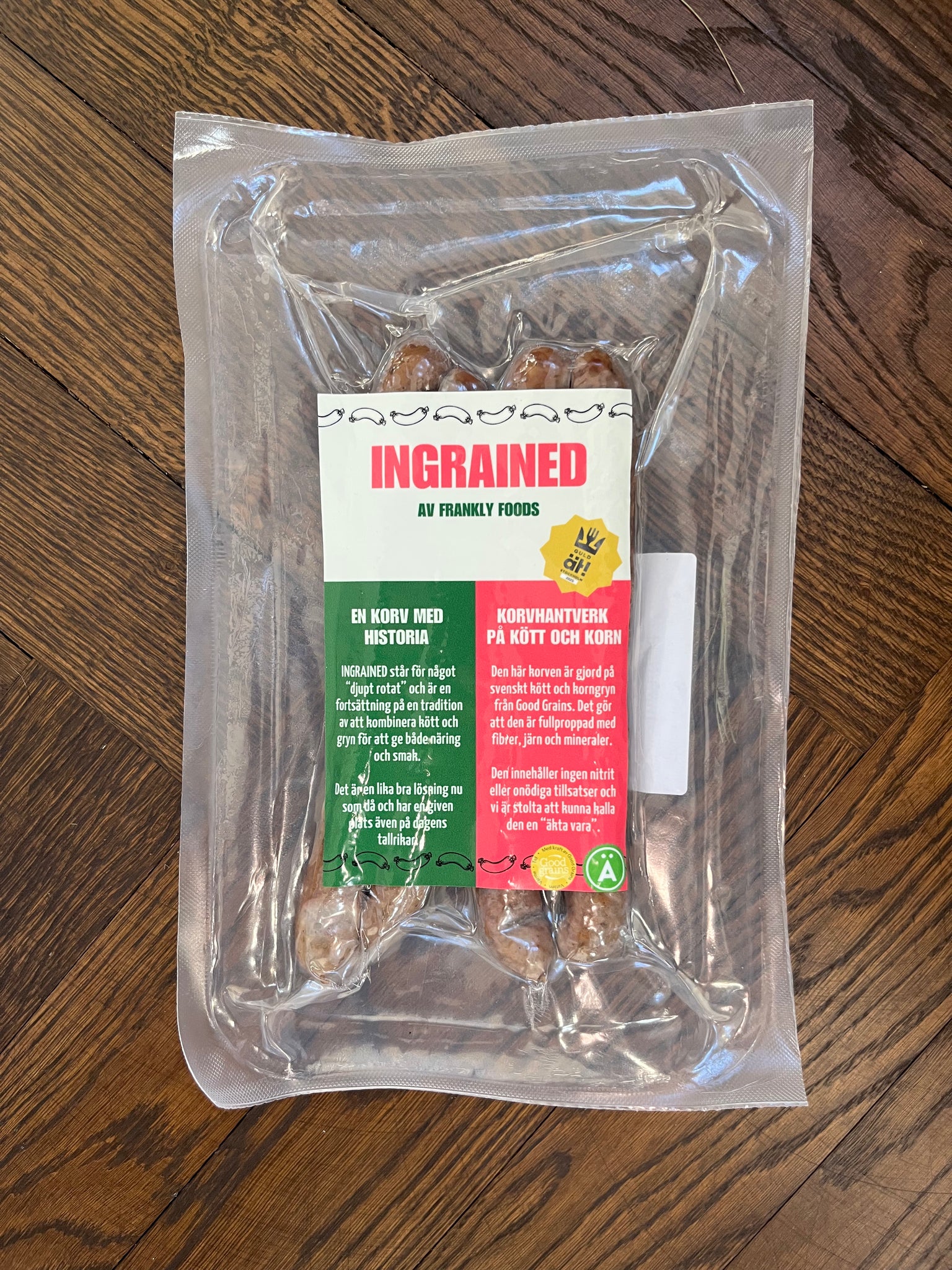 Denna korv är en modern tolkning av uråldrig svensk hantverkstradition, nämligen korv gjord på kött och korngryn. Ingrained vann 1:a pris i Ät!Sthlm 2025 tack vare att den är hållbar, hälsosam och framförallt vansinnigt god!
