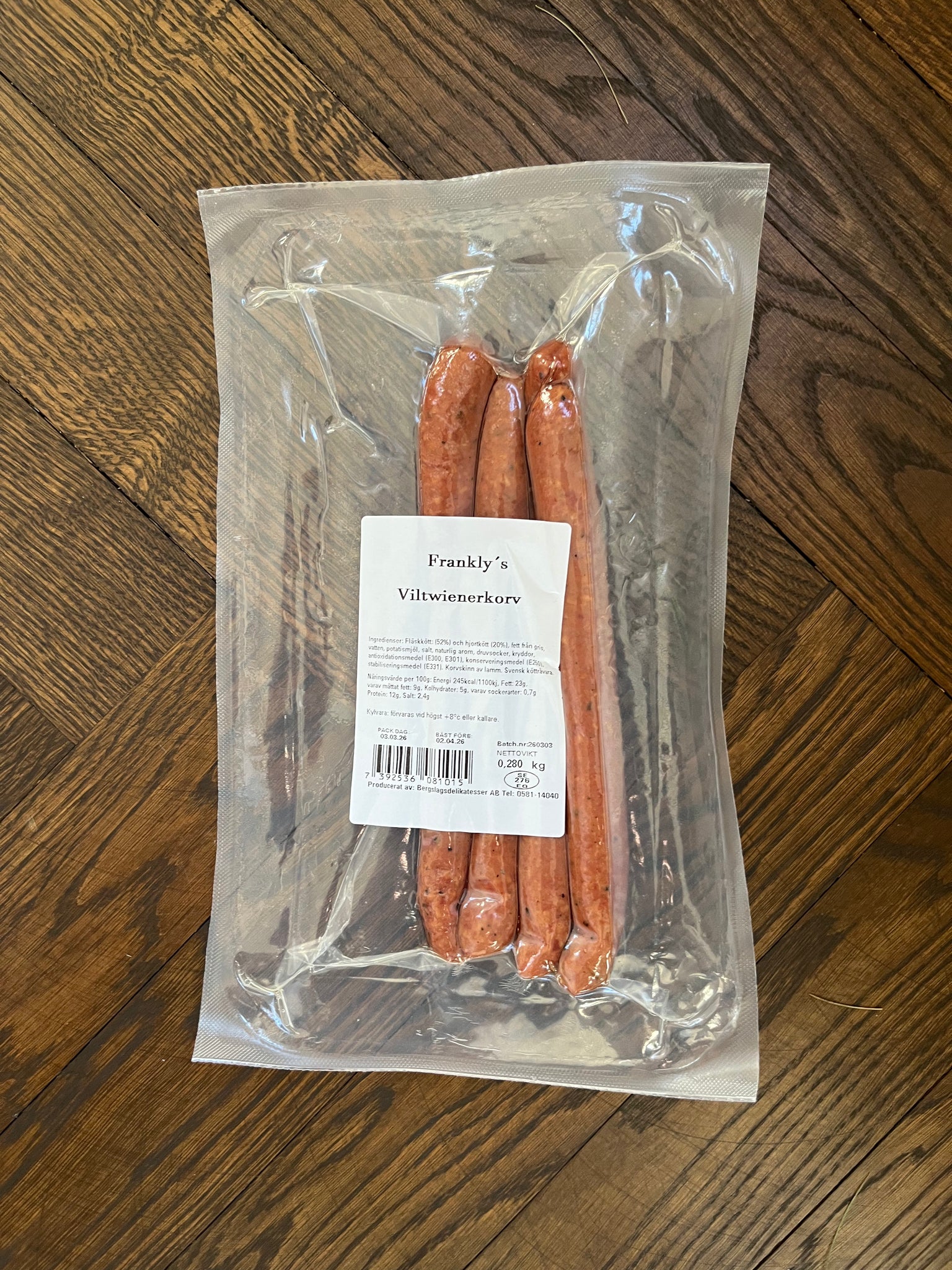 Denna högkvalitativa wienerkorv är så bra som en wienerkorv kan bli, gjord på viltkött och späck från tamgris.